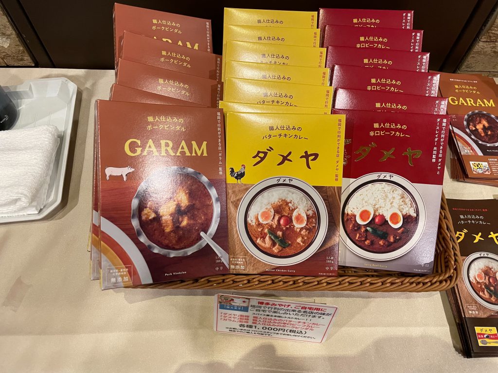 ところで、東洋ホテルのロビーで「GARAM (ガラム)福岡市中央区高砂1丁目7−4」と「ダメヤ (福岡市博多区博多駅前4-10-1)」 のレトルトカレーを発見しました。